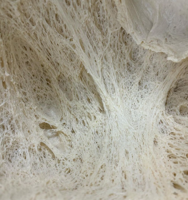 Première fermentation (2 à 4 heures) : Le réseau gluténique commence à se former, les enzymes agissent, et la pâte se repose 💤. Les protéases brisent les protéines, rendant la pâte plus digeste.